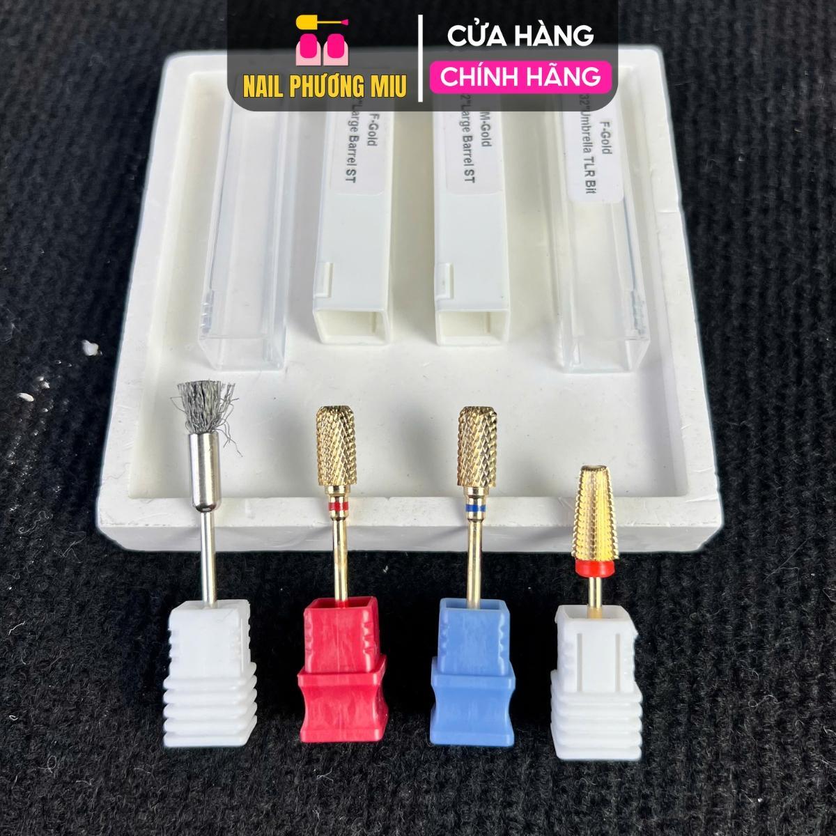 ✨Combo 3 Đầu Mài Titan Đa Năng 5in1 Mạ Vàng Tặng Chổi Vệ Sinh Vonfram Bo Viền Đúc Đặc, Xanh Mài Phá gel , Đỏ Mài Mịn Êm Không Nóng Nữ Women