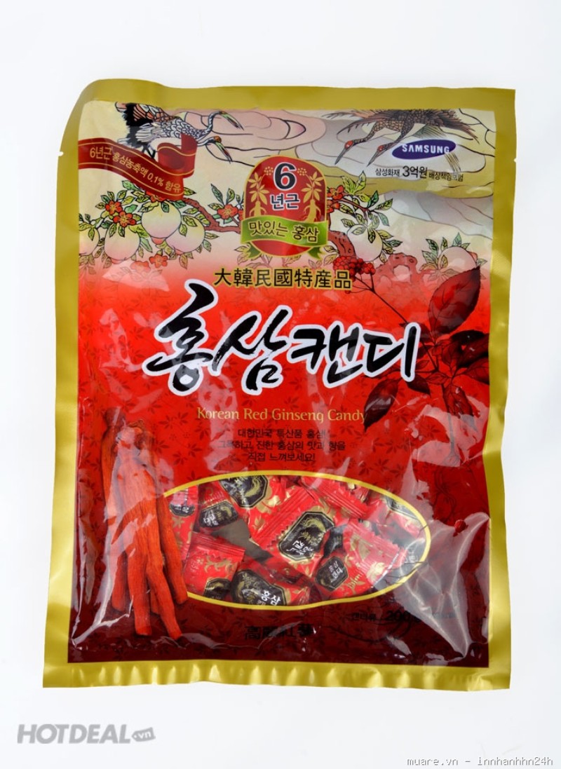 Kẹo hồng sâm chiết xuất từ tinh chất hồng sâm Hàn Quốc tốt cho sức khỏe, giúp thư giãn và sảng khoái tinh thần kết hợp với một số thảo dược tự nhiên có tác