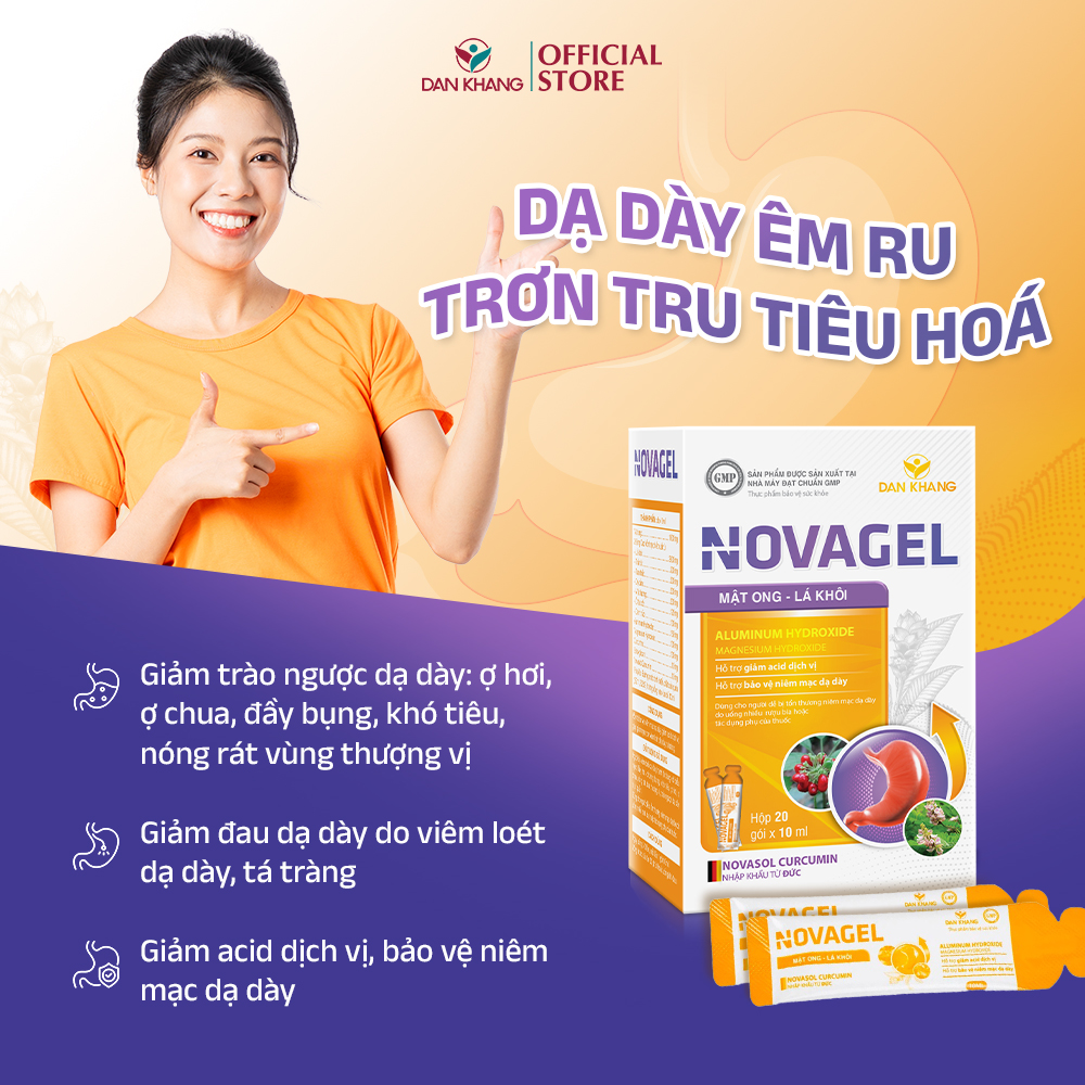 COMBO HỖ TRỢ GIẢM ĐAU DẠ DÀY TÁ TRÀNG Combo bao gồm: + 1 Gói Uống Hỗ Trợ Giảm Đau Dạ Dày Tức Thì Novagel Hộp 20 Gói + 1 Viên Uống Tinh Chất Nghệ Hỗ