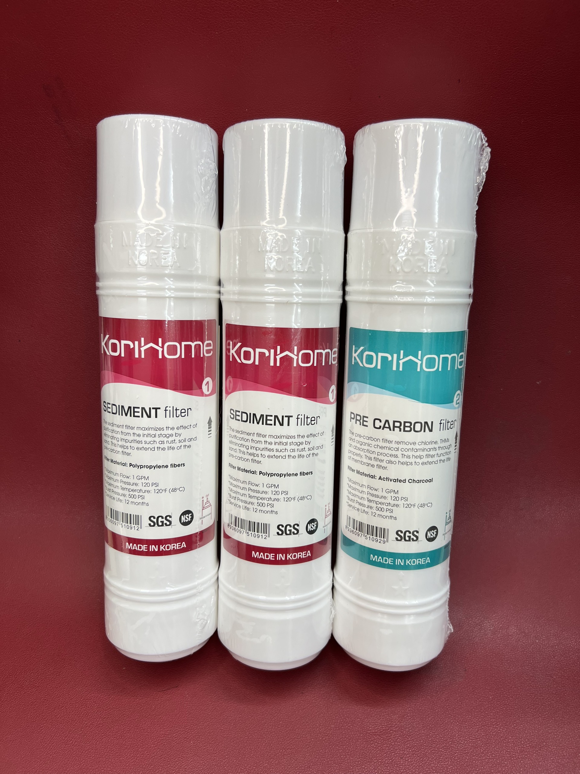 ✨Combo 3 lõi lọc Korihome - 2 lõi Sediment và 1 lõi Pre-cacbon - Hàng chính hãng