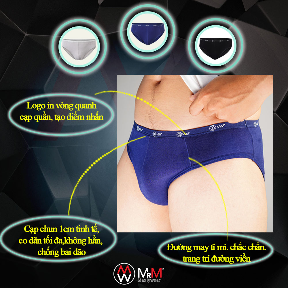CHI TIẾT SẢN PHẨM: . Quần tam giác Brief cạp nhỏ 1cm MR.M thiết kế tinh tế, kiểu dáng đơn giản ôm vừa vặn tôn lên vòng 3 người mặc . Logo in vòng quanh cạp quần, tạo điểm nhấn. . Mang lại cảm giác dễ chịu, đảm bảo sự thoải mái tối đa cho người mặc CHẤT LIỆU: . Vải Bamboo cao cấp mềm mại, mịn màng và thoáng mát, mang đến cảm giác mát lạnh khi chạm vào . Thấm hút tuyệt đối gấp 3 lần trọng lượng sợi giúp tăng cường thoát hơi nước trên da, duy trì độ ẩm mang đến cho người mặc sự thoải mái . Tính năng kháng khuẩn khử mùi tự nhiên được duy trì ngay cả sau nhiều lần giặt . Thuộc tính cách điện của sợi tre giúp cân bằng nhiệt độ cơ thể dù trong mùa đông hay mùa hè.