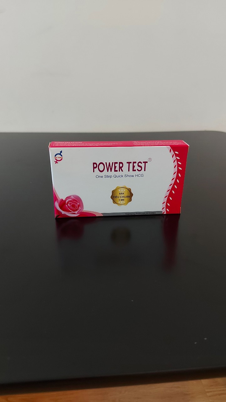 Tên sản phẩm: Que thử thai PowerTest Kích thước test: rộng 3mm Tính năng: Phát hiện thai sớm sau 6 -9 ngày trứng rụng ƯU ĐIỂM: Phát hiện thai sớm sau 6 -9 ngày