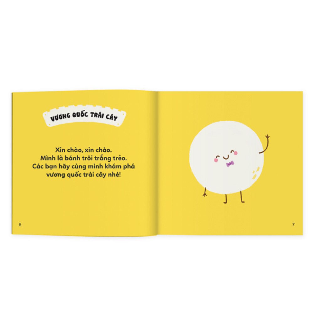 - Bánh trôi trắng trẻo có một hành trình phiêu lưu thú vị: Mỗi khi bơi qua một dòng nước lại biến thành một loại trái cây mang nhiều màu sắc khác nhau. "Trái câu muôn màu" cho bé thấy được sự đa dạng về màu sắc của những loại trái cây quen thuộc.