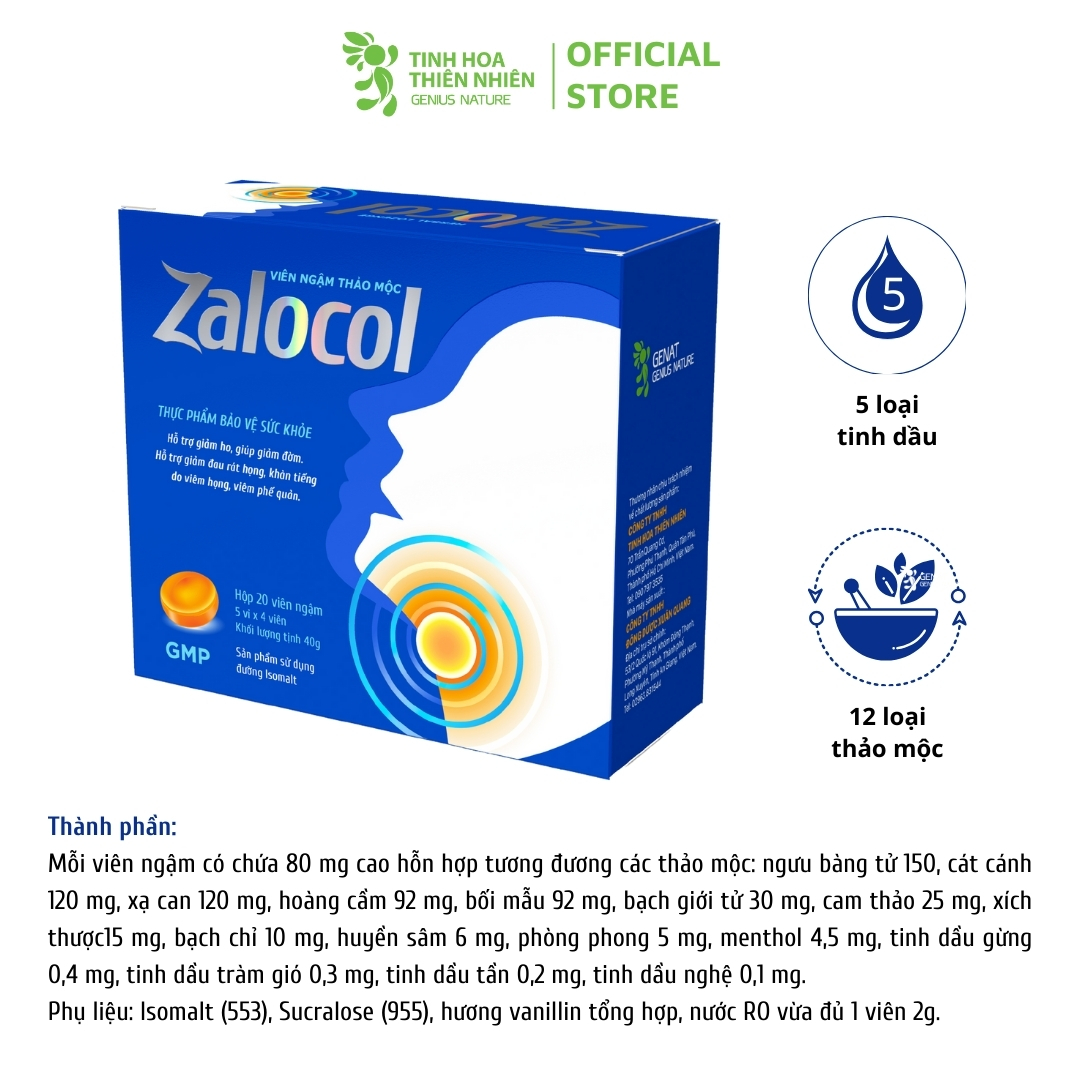 Combo 45 hộp viên ngậm thảo mộc Zalocol Hỗ trợ giảm ho, giảm đờm, giảm đau rát họng, khản tiếng - Genat