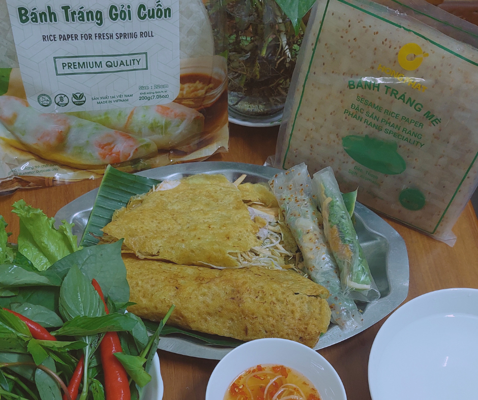 Với combo ăn ý sẽ cho bạn một bữa tiệc cuốn siêu ngon và hấp dẫn. Món bánh tráng cuốn chả giò và sự kết hợp giữa bánh tráng trắng, bánh tráng chả giò, bún