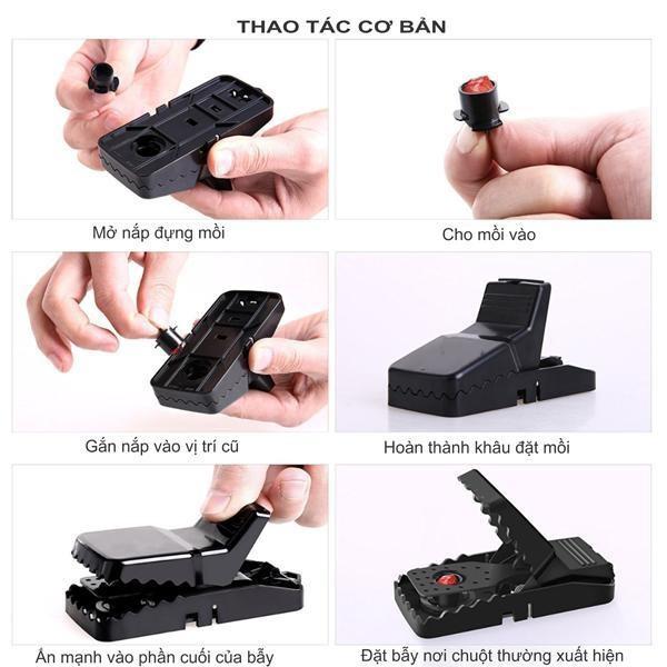 iện lợi dễ sử dụng Không cần mồi vẫn có thể bẫy chuột (Đặt bẫy ở những nơi chuột hay đi qua lại) Hoặc sử dụng thức ăn ưa thích của chuột để bẫy Bẫy