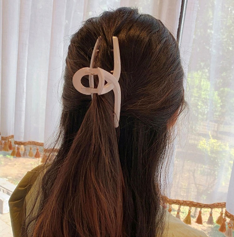 Kẹp càng cua dáng dài sẽ phù hợp với mái tóc dài và dày, đặc biệt là kiểu búi tóc cao gọn gàng, mát mẻ. Cách thả lơi vài lọn tóc hai bên giúp tạo sự thon gọn cho khuôn mặt, tôn lên nét nữ tính thanh thoát.