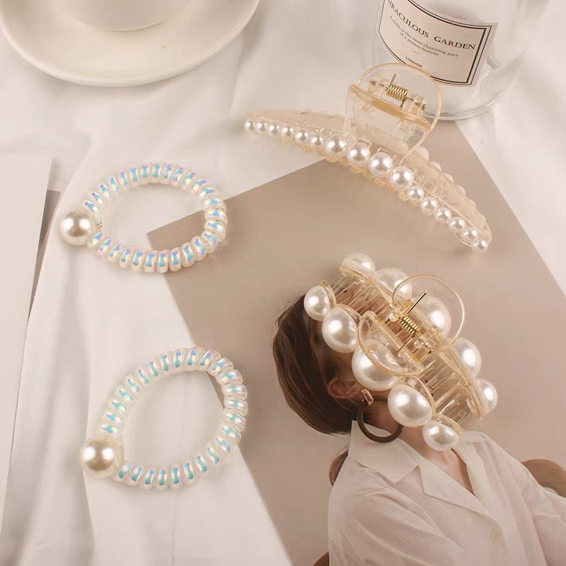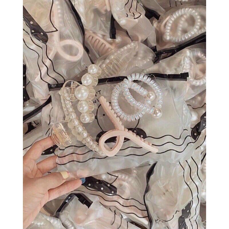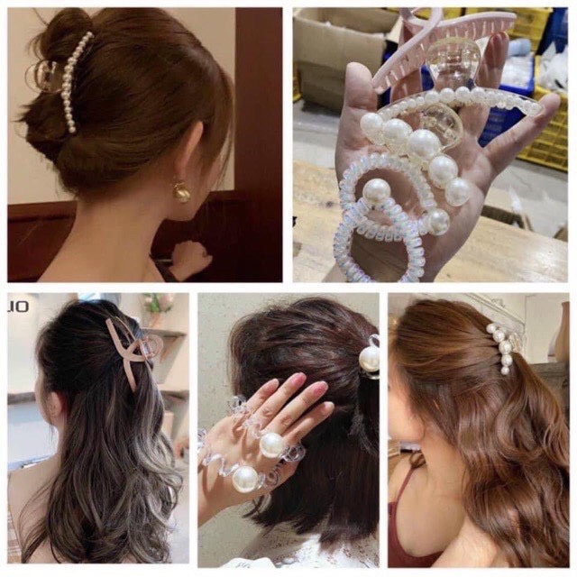 Các nàng hãy thêm ngay set 5 món kẹp tóc và dây buộc đính ngọc trai này vào bộ saưu tập phụ kiện tóc trending ngay nhé