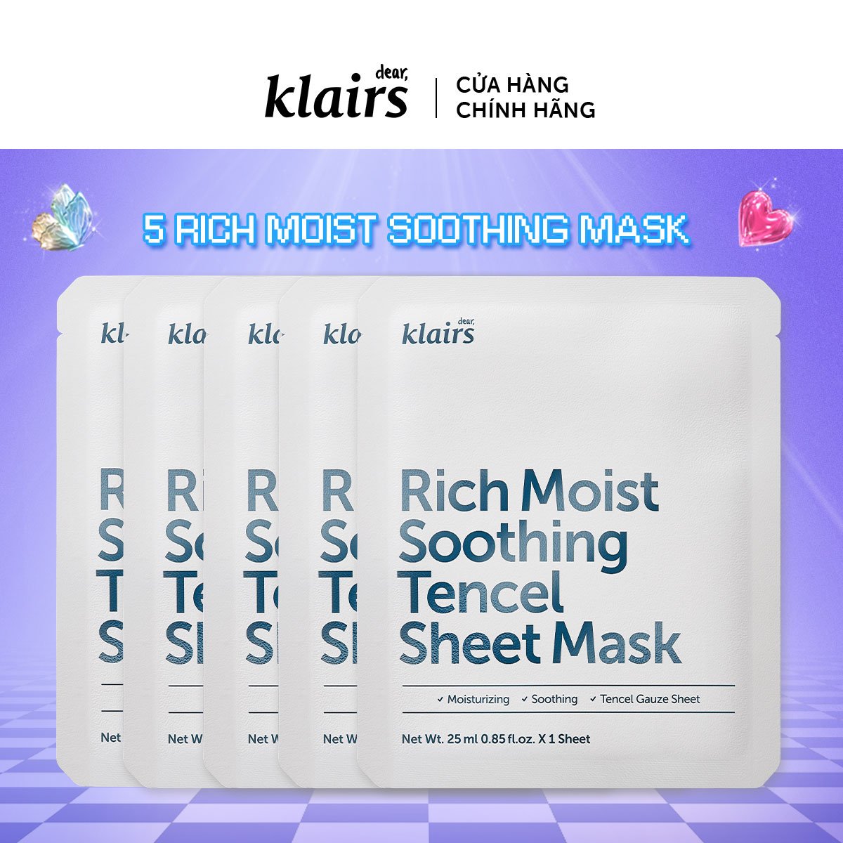 Mặt nạ giấy cấp ẩm Rich Moist Soothing Tencel Sheet Mask là dòng mặt nạ đến từ thương hiệu Klairs với chất mặt nạ tencel mỏng nhẹ, giúp ôm sát da và cho da hấp thụ dưỡng chất tốt. Sản phẩm có khả năng cấp ẩm sâu cho da, làm dịu làn da khô ráp, mẩn cảm, dễ kích ứng do thời tiết hanh khô, khó chịu.