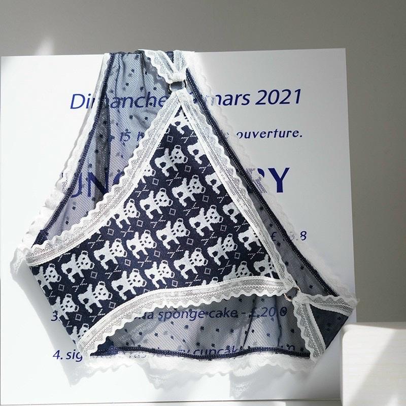 ✨Combo 5 quần lót nữ thun dệt in hình gấu phối ren 409 – Co giãn 4 chiều, siêu mềm mại