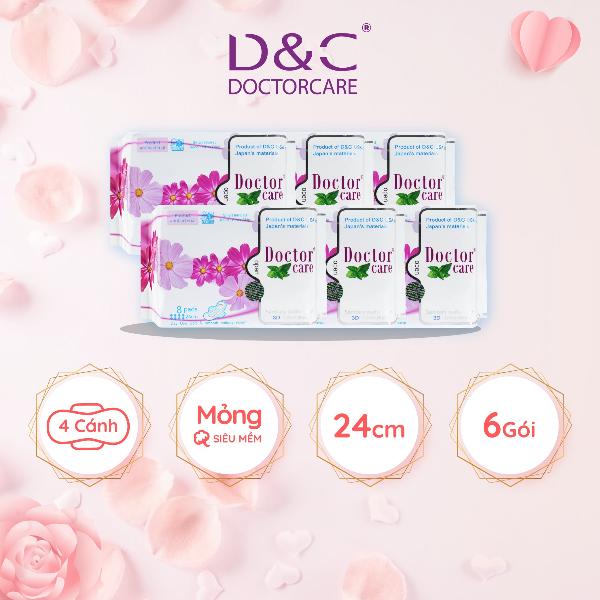 - Đóng gói: [6 gói x 08 miếng] ĐẶC ĐIỂM NỔI BẬT BĂNG VỆ SINH DOCTOR CARE BAN NGÀY