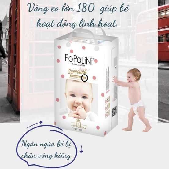 - Tã/ Bỉm POPOLINI với phần lưng thun co giãn 360 độ linh hoạt và mềm mại giúp hoạt động của bé trở nên dễ dàng, năng động.