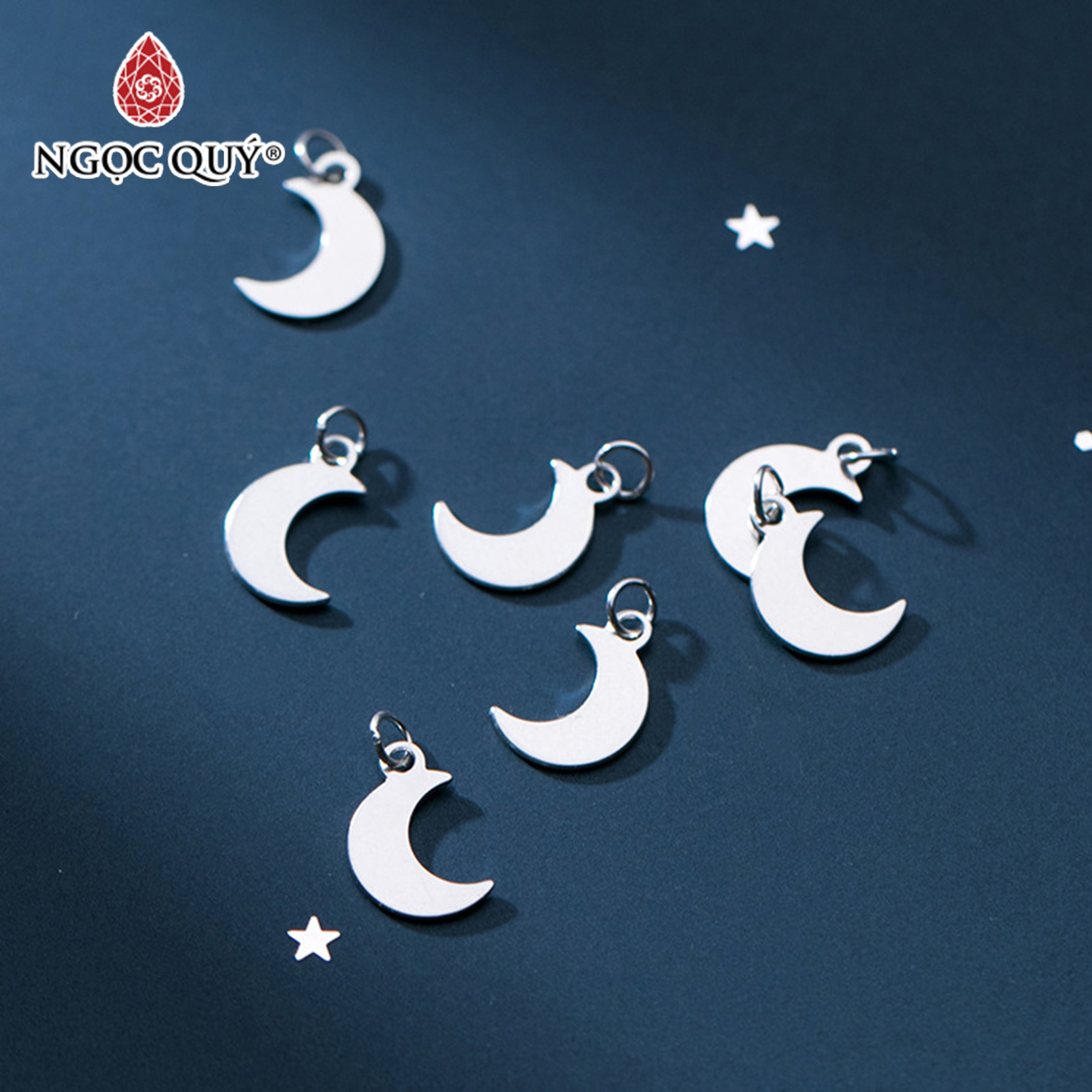 ✨Combo 6 cái charm bạc trắng hình ông trăng treo - Ngọc Quý Gemstones
