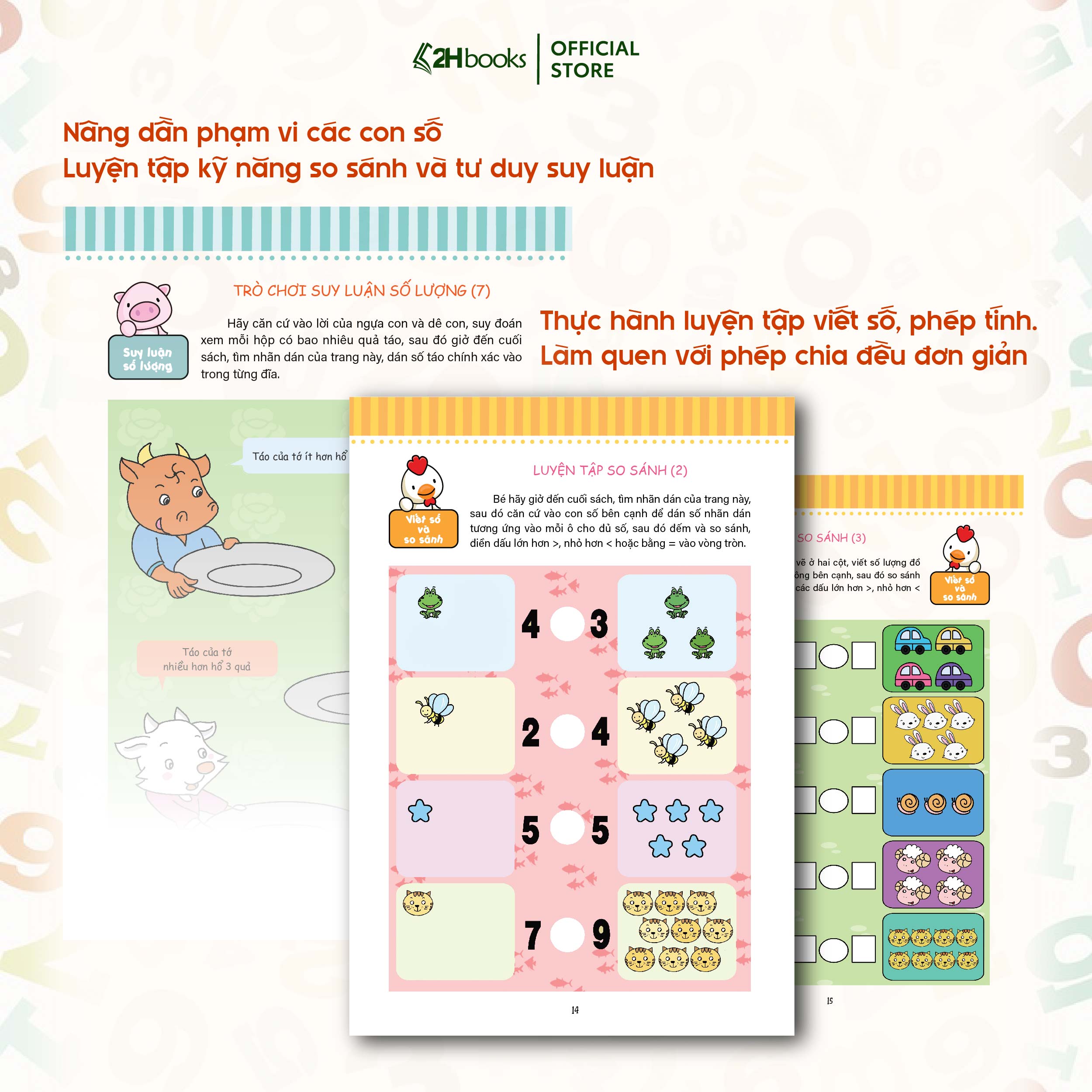 Bộ sách toán học cho trẻ mẫu giáo với những bài toán thú vị về số đếm hình dạng, phép tính, so sánh, quy luậ Được minh hoạ sinh động, đẹp mắt, sẽ giúp các