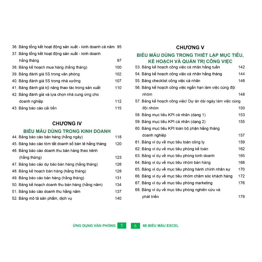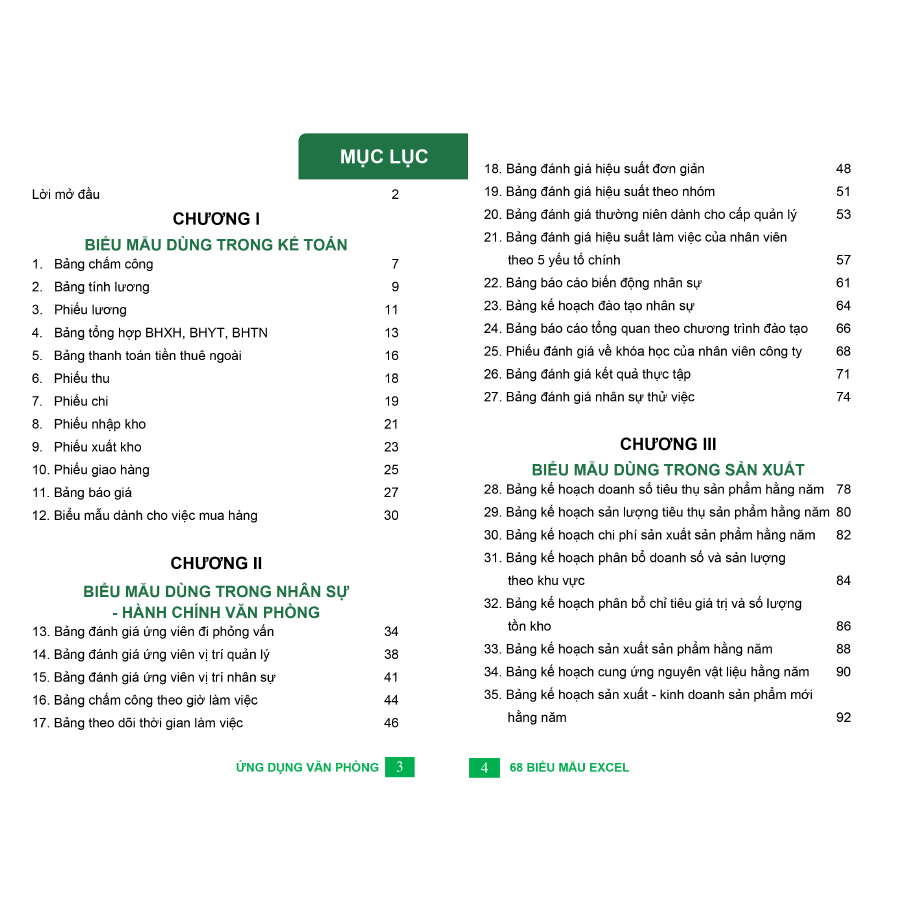 - Sách 68 Biểu mẫu Excel - Tổng hơp các biểu mẫu Excel ứng dụng trong văn phòng là cuốn sách tin học văn phòng tuyệt vời để giúp bạn giải quyết các vấn đề với các biểu mẫu thông dụng: trong kế toán, hành chính văn phòng sản xuất, kinh doanh. Có thể ứng dụng vào việc: Tính lương, chấm công, và quản lý tinh gọn trên Excel. MỘT SỐ ĐIỀU NỔI BẬT CỦA BỘ SÁCH TIN HỌC VĂN PHÒNG