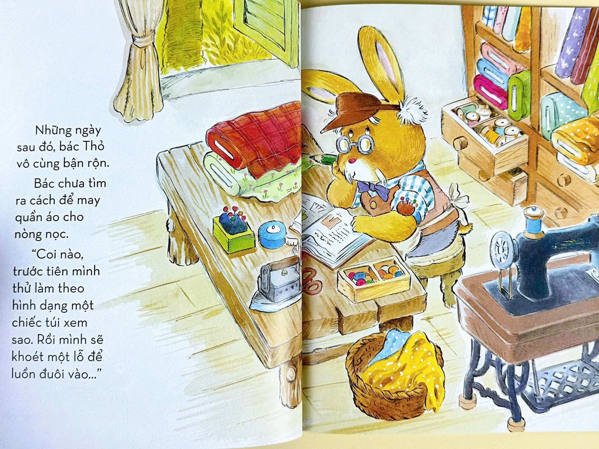 Bác Thỏ mở tiệm may, ai đi ra từ tiệm cũng có bộ đồ xinh lắm. 7 chú nòng nọc cũng muốn có, vậy là chúng đặt bác Thỏ may 7 bộ đồ. Bác Thỏ
