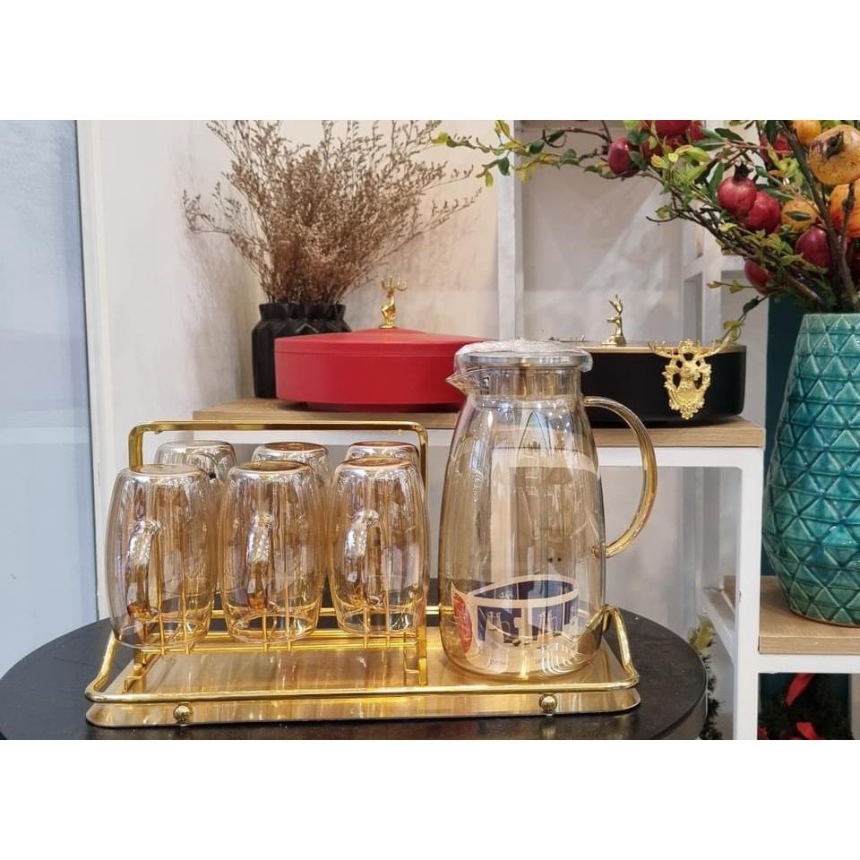 Bộ bình 6 cốc thủy tinh chịu nhiệt mạ vàng cao cấp