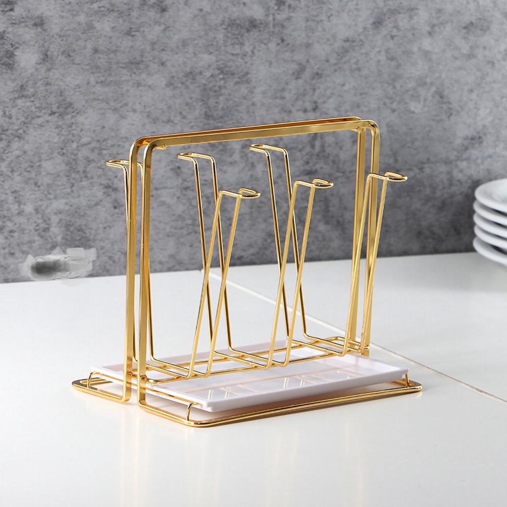 ✨Combo bình đựng nước uống thủy tinh vàng vân sọc kèm khay và giá úp cốc ( giá úp cốc kim lọai mạ vàng giao ngẫu nhiên )