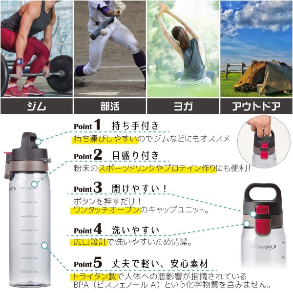 ✨Combo bình nước Tritan Charger 830ml tặng dụng cụ rửa chai lọ chuyên dụng Antibacterial hàng nội địa Nhật Bản