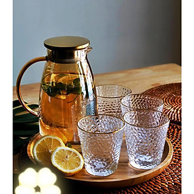 Bộ sản phẩm gồm: 1 bình thủy tinh đựng nước + 6 cốc + 1 khay + 1 giá treo cốc