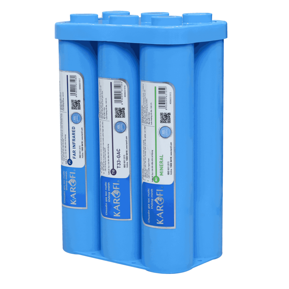 - bảo vệ màng RO không bị tắc bởi chất rắn lơ lửng rất nhỏ Lõi lọc số 4 Karofi hay còn gọi là màng lọc RO. Đây là bộ phận quan trọng nhất của chiếc lõi lọc nước Karofi được ví như quả thận của con người. Màng RO được nhập khẩu nguyên chiếc từ Mỹ (USA) được sản xuất bằng vật liệu đặc biệt có độ bền cao an toàn tuyệt đối. Nguyên liệu của lõi lọc số 4 Karofi: Vật liệu lõi lọc nước Karofi đặc biệt Màng RO thẩm thấu ngược, có khe lọc đạt 0,0001 micron Chức năng của lõi lọc số 4 Karofi: Lọc nước Karofi loại bỏ hoàn toàn chất rắn, khí hoàn toàn trong nước, các Ion kim loại nặng, vi sinh vật, vi khuẩn, siêu vi khuẩn Amip ăn não người, các chất hữu cơ làm cho nước trở nên hoàn toàn tinh khiết nhưng không làm thay đổi tính lý – hoá của nó Tuổi thọ lõi lọc nước Karofi số 4: 1.5năm đến 3 năm (~ 90.000 lít) Bộ 6 Lõi Chức Năng Đúc Nguyên Khối Karofi SMAX Hiệu Suất Cao HP 6.1