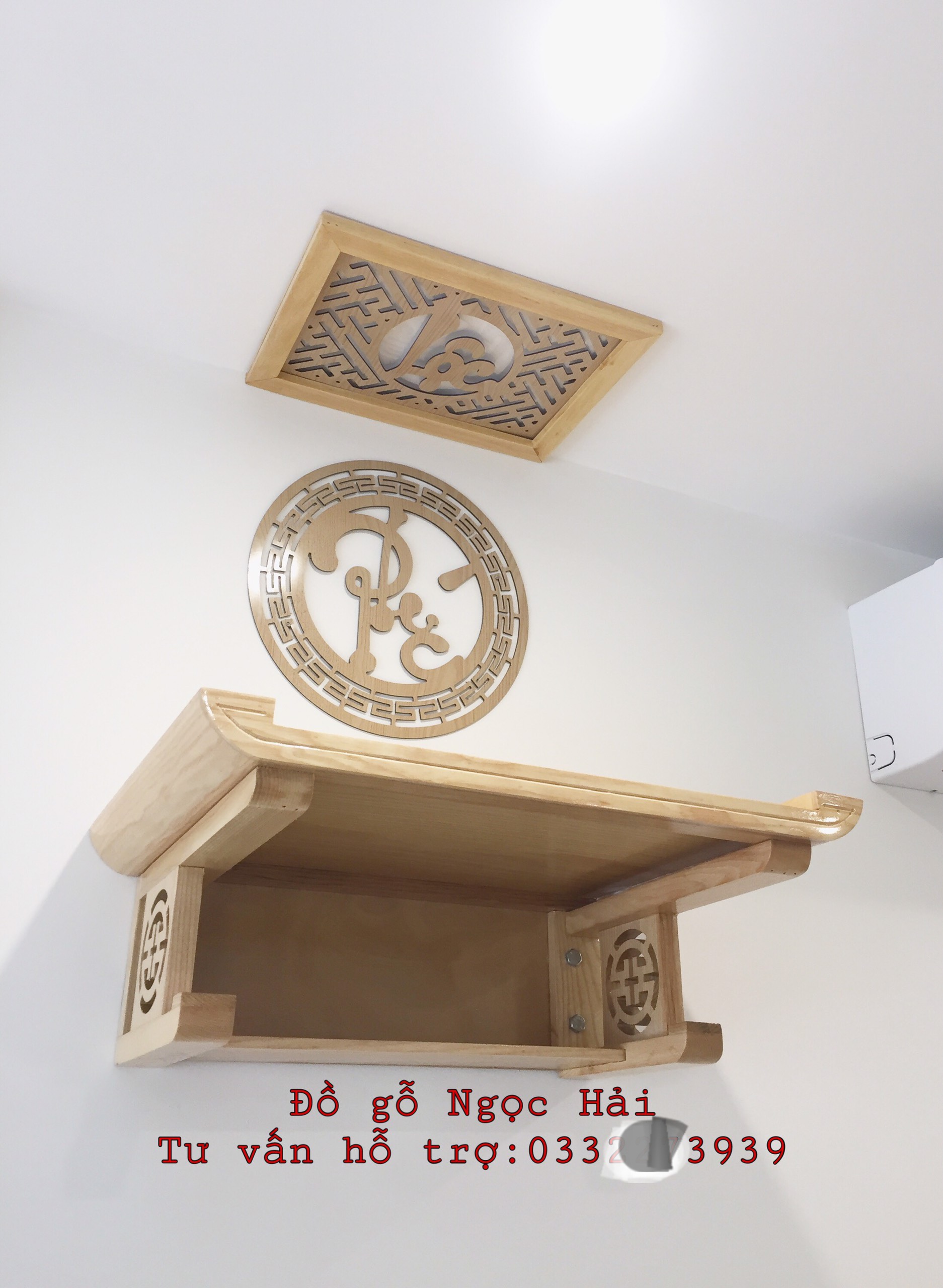 _ Combo bộ bàn thờ cúng được làm bằng chất liệu gỗ sồi nga tự nhiên 100% _Tấm ám khói khung gỗ sồi ,cnc lá chắn bằng mica và chữ phúc hay chữ bất kỳ