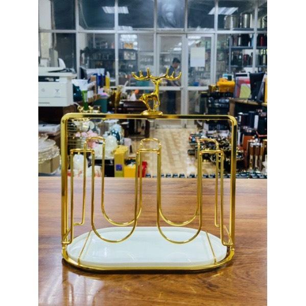 THÔNG TIN SẢN PHẨM Giá sản phẩm được quy theo các phân loại sau, quý khách vui lòng đọc kĩ các combo phân loại nhé: ️Mô tả: 1 - Bộ combo Gồm 1 bình thủy tinh & 6 cốc thủy tinh + 1 khay inox tráng gương mạ vàng hình vương miện + 1 gía úp cốc đầu hươu kim loại mạ vàng.