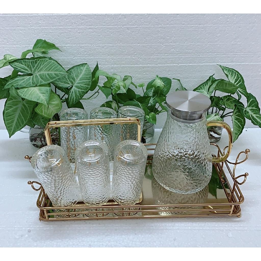 ✨COMBO BỘ BÌNH CỐC THỦY TINH CHỊU NHIỆT CAO CẤP KÈM KHAY VƯƠNG MIỆN VÀNG VÀ GIÁ ÚP CỐC