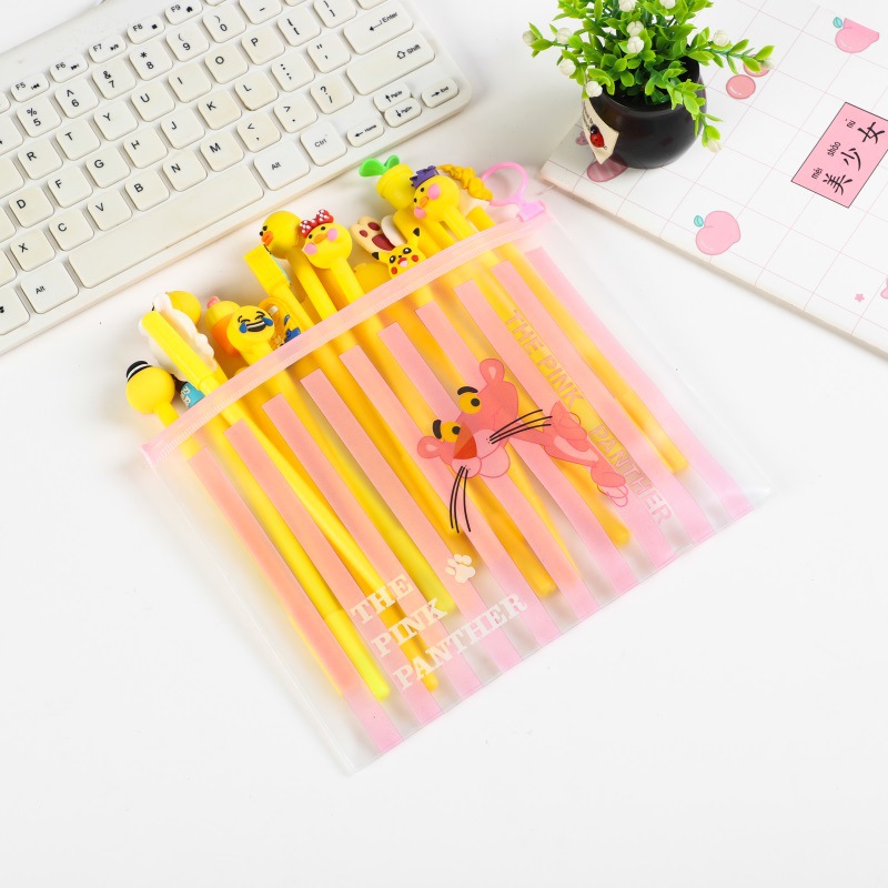 Bộ bút bi dễ thương 10 chiếc màu xanh dương tặng kèm túi đựng bút Combo 10 bút hình ngộ nghĩnh dễ thương, tặng kèm túi zip đựng tiện dụng Phù hợp với các bạn