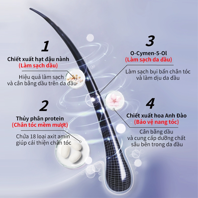 - Tóc bị dầu? (Gội sạch da đầu và tóc để loại bỏ dầu tích tụ, giảm tiết dầu, cân bằng môi trường da đầu),
