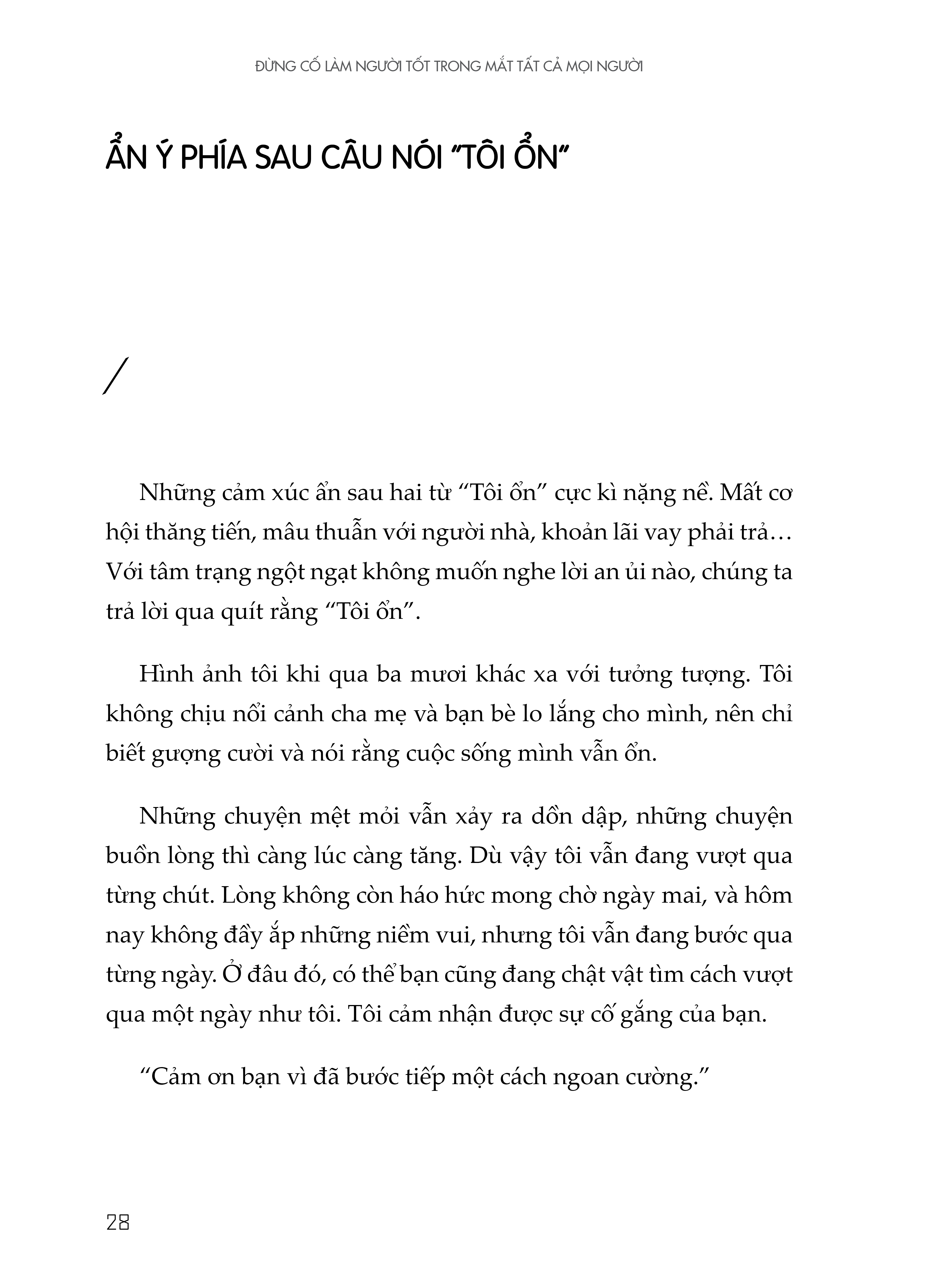 QUYỂN 1: ĐỪNG CỐ LÀM NGƯỜI TỐT TRONG MẮT TẤT CẢ MỌI NGƯỜI