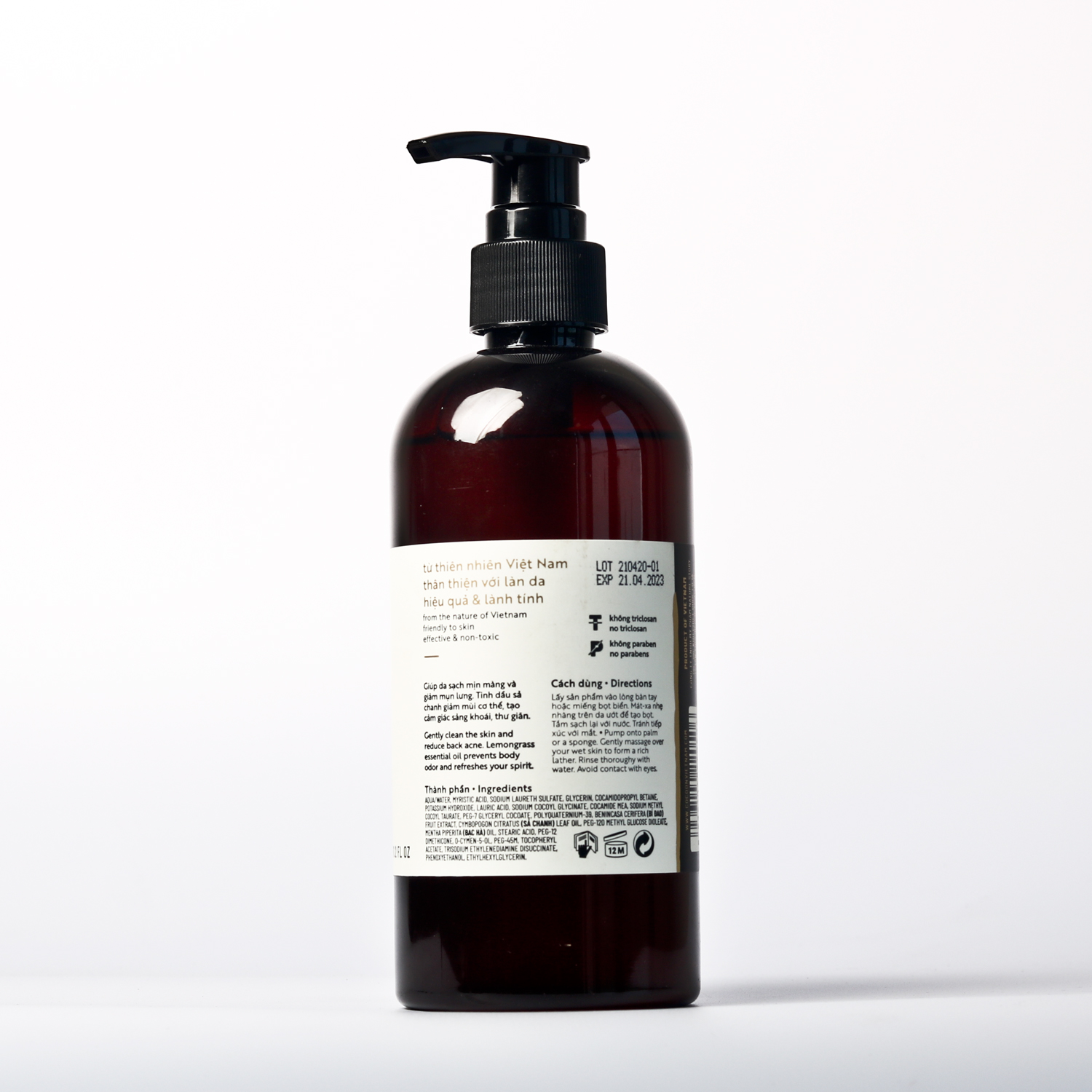 - Giúp da sạch min màng và giảm mụn lưng. tinh dầu sả chanh giảm mùi cơ thể, tạo cảm giác sảng khoải, thu giãn. (Gently clean the skin and reduce back acne. Lemongrass essential oil prevents boby odor and refreshes your spirit) Ưu điểm • Không Triclosan (Trclosan free) • Không Paraben (Paraben free) • Tạo mùi thơm bằng tinh dầu thiên nhiên Cách dùng Gel tắm bí đao Cocoon (winter melon shower gel):