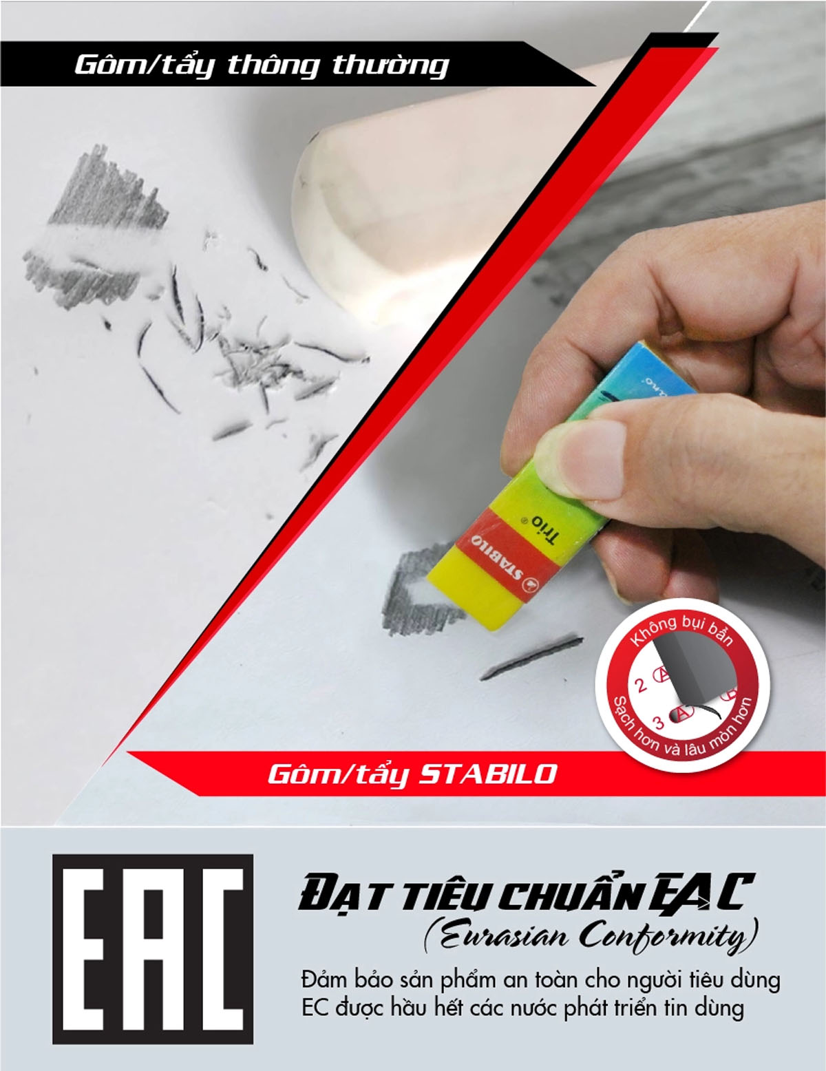 - Không chứa các hóa chất độc hại, an toàn khi sử dụng - Tẩy mềm dẻo, không bị khô cứng hay giòn gãy - Dễ dàng tẩy sạch các vết bẩn mà không làm