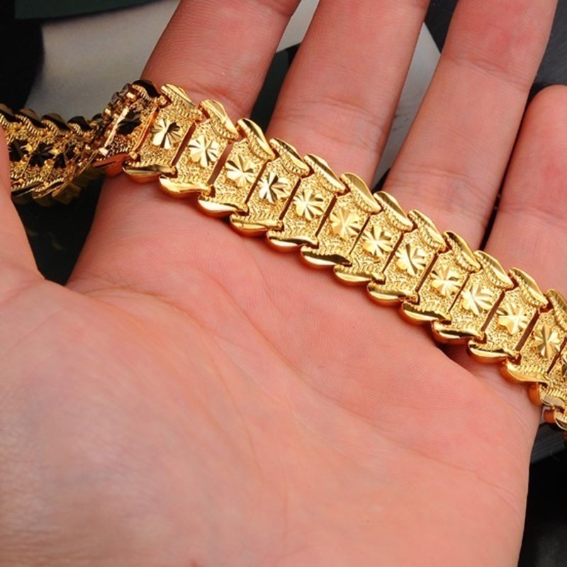 ✨Combo Lắc tay Nam Nữ bản rộng, Phong cách Âu Mỹ, Mạ vàng 18K, Bản 17li, Dài 20cm, Tương đương mẫu 1cây8 vàng thật, Kèm túi đựng Trang sức Cung Hỷ - Mẫu Crown.X.436B