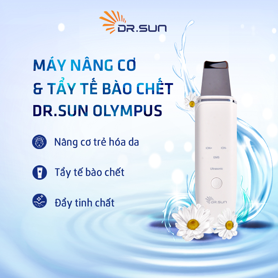 COMBO TRẺ HOÁ DA TRỌN BỘ với máy triệt lông & trẻ hóa da DR SUN PRO và Máy trẻ hóa da & tẩy tế bào chết DR SUN OLYMPUS MÁY TRIỆT LÔNG DR SUN PRO Siêu phẩm máy triệt lông tại nhà giúp chăm da láng mịn, hoàn hảo với 3 tính năng trong 1 chiếc máy nhỏ gọn: • Công nghệ IPL: Các xung ánh sáng có bước sóng 420-1200nm, tiến sâu và tác động vào tận gốc lỗ chân lông • Công nghệ triệt lạnh ICE COOL, nhiệt độ triệt xuống chỉ còn 10*C. • Đầu triệt bikini riêng: việc triệt vùng da bikini sẽ trở nên dễ dàng, an toàn và hiệu quả hơn. • Trẻ hóa da và giảm mụn: Các bước sóng ngắn giúp tăng sản sinh collagen, giúp da trắng sáng, mờ vết thâm • 6 cấp độ xung: đem lại cảm giác dễ chịu, thoải mái khi sử dụng sản phẩm. MÁY TRẺ HÓA DA VÀ TẨY TẾ BÀO CHẾT DR SUN OLYMPUS. Ưu điểm vượt trội: • Sóng âm Ultrasonic giúp giảm bụi bẩn trên da một cách hiệu quả, không bào mòn và làm mỏng da như các sản phẩm tẩy tế bào chết hoá học. • Ion dương làm sạch da và thanh lọc sâu lỗ chân lông. • Ion âm đưa dưỡng chất vào sâu trong lớp biểu bì giúp trẻ hóa làn da • Dòng điện EMS tăng độ đàn hồi cho da