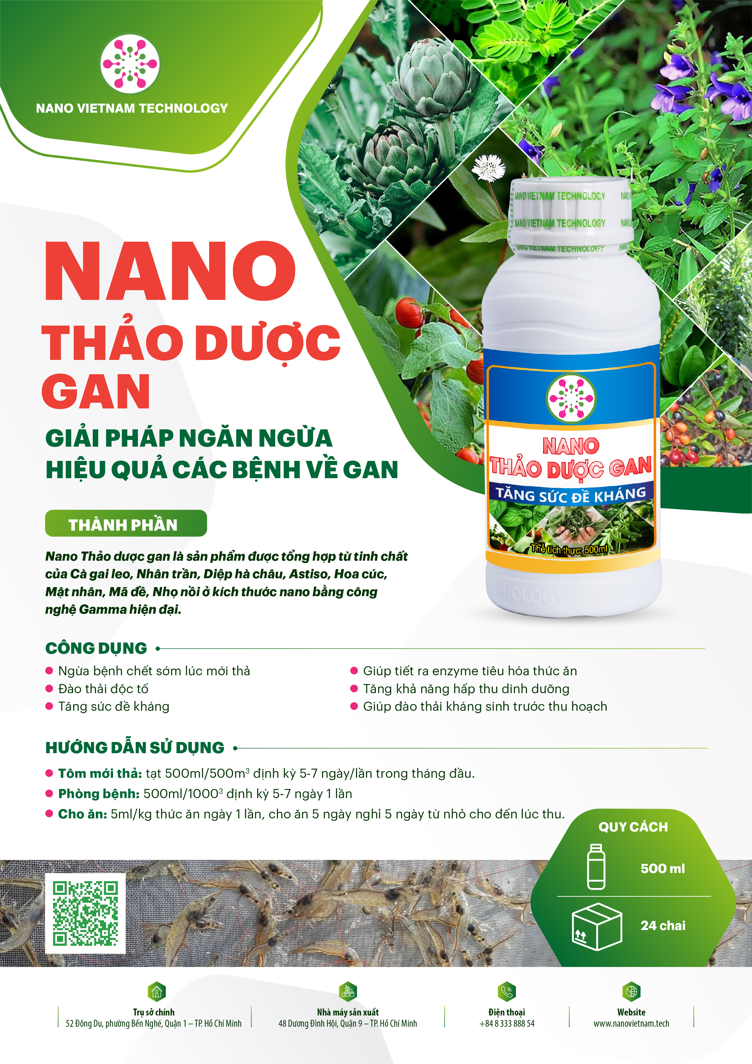 - Kiểm soát tốt khuẩn, nấm, ký sinh trùng trong ruột tôm cá. Nano Thảo Dược Ruột là sự kết hợp đặc biệt của nano tỏi đen và các thành phần thảo dược thiên nhiên giúp tăng sức đề kháng đường ruột, hấp thụ và chuyển hóa chất dinh dưỡng. Khắc phục hiện tưởng lỏng ruột, trống ruột, tăng khả năng hấp thu thức ăn. CÔNG DỤNG: