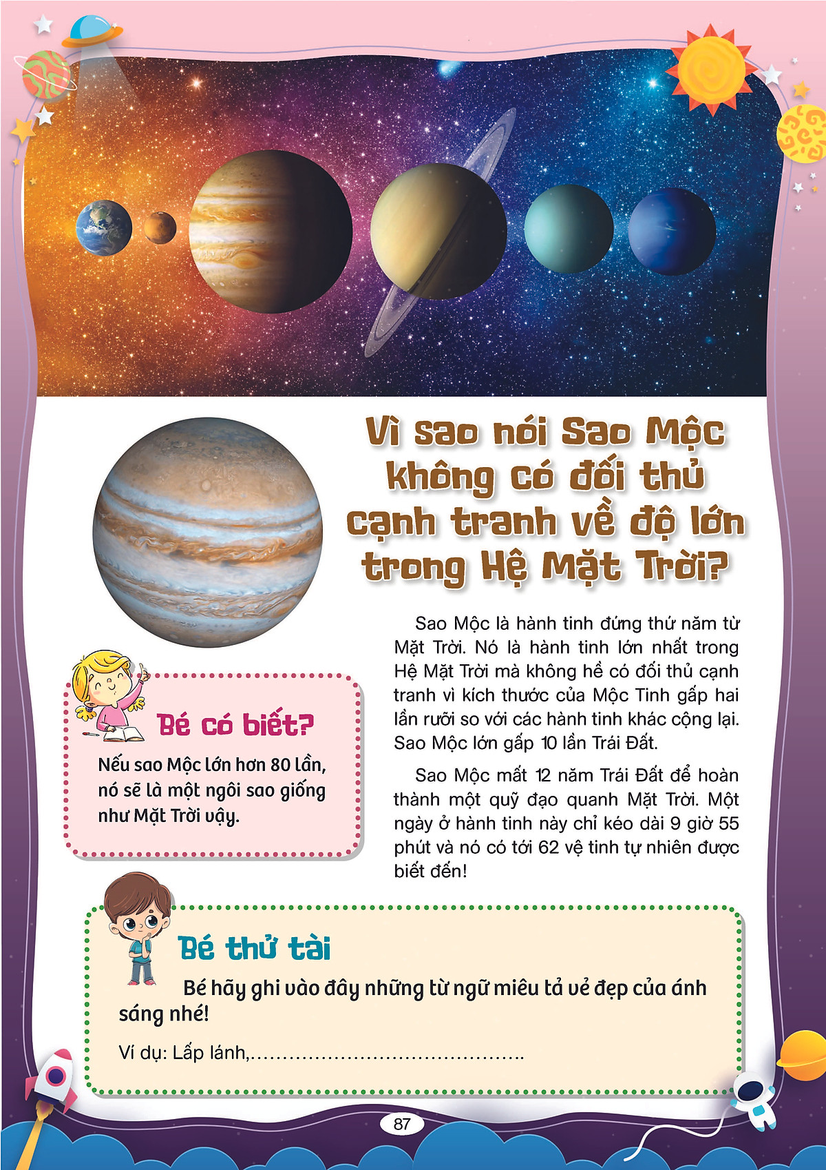 THÔNG TIN SÁCH Loại bìa: Bìa cứng Số trang: 16 trang Kích thước: 216 x 284 x 17mm Blast off to explore our Solar System - from the fearsome heat of the Sun to the