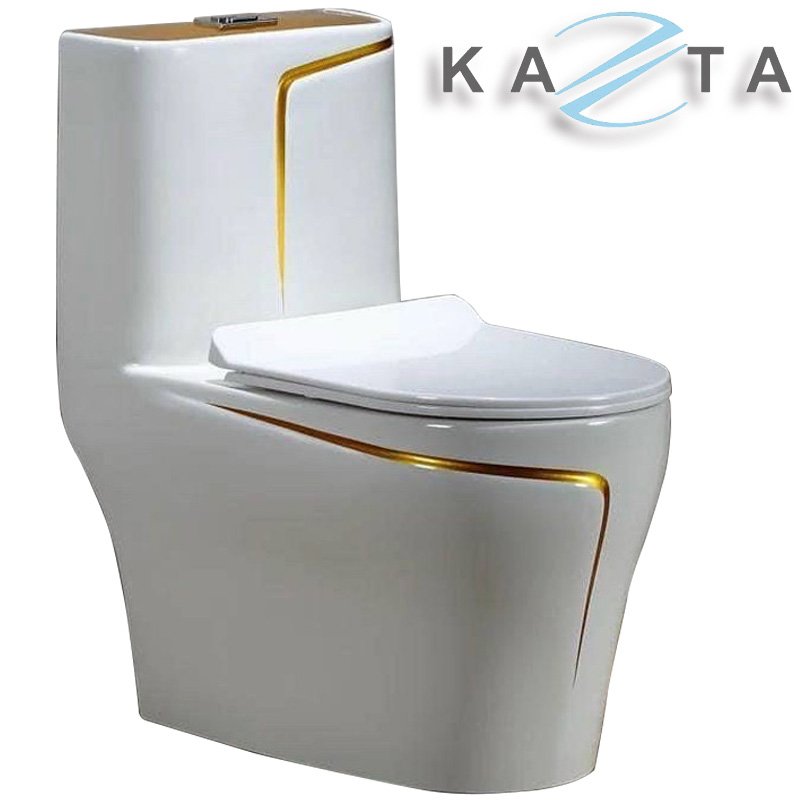 ✨COMBO Thiết Bị Nhà Tắm Cao Cấp KAZTA KZ-CBT15VĐ: Bồn cầu 1 khối viền vàng, Sen tắm chỉnh nhiệt, Gương đèn, Lavabo Bàn Đá 2 Tầng, Vòi và phụ kiện