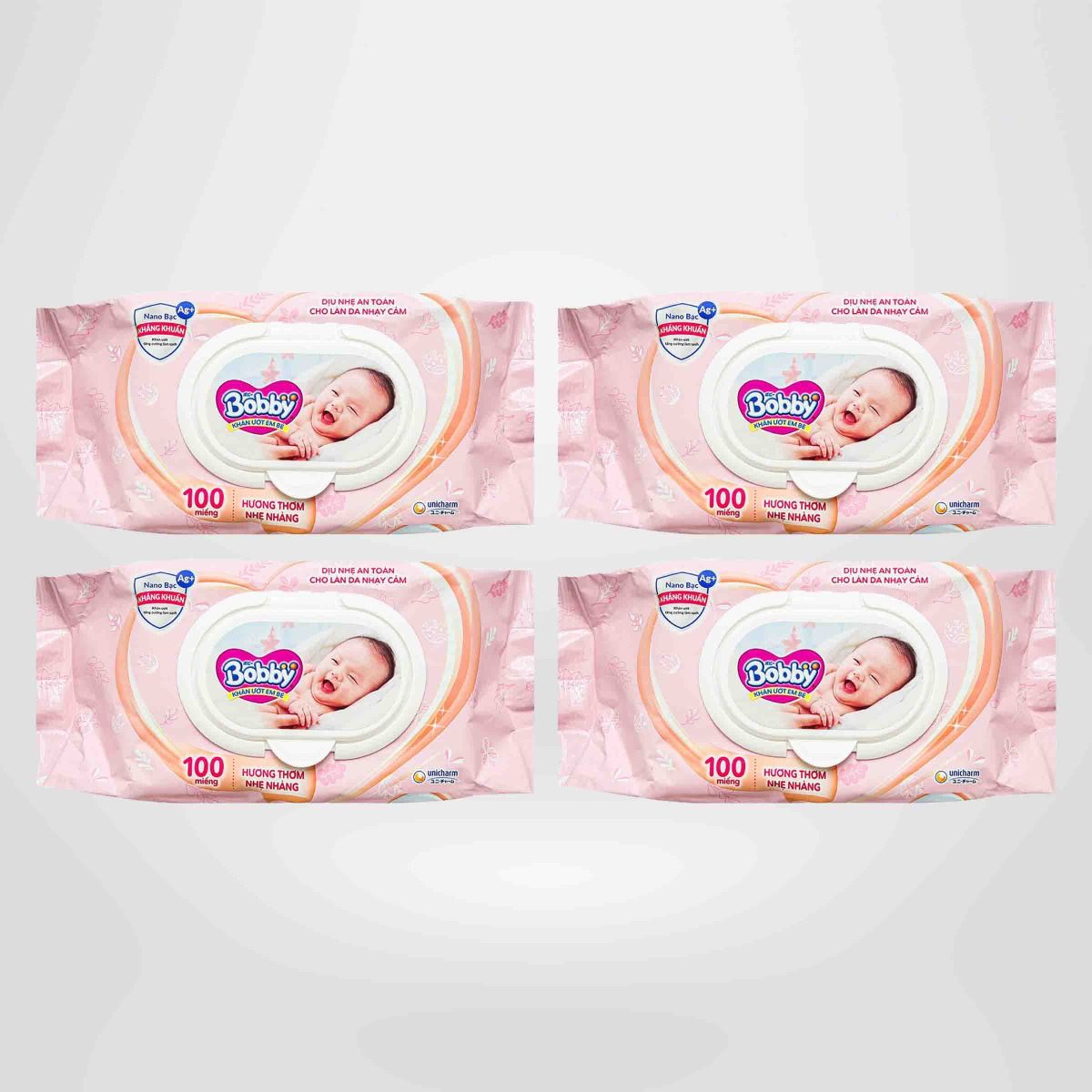 ✨Combo Tiết Kiệm - 4 Gói Khăn Ướt Bobby Care Hương Dịu Nhẹ 100 Tờ/Gói