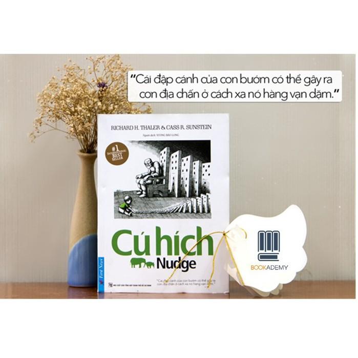 - CÚ HÍCH Công ty phát hành: First News - Trí Việt Tác Giả: Richard H. Thaler, Cass R. Sunstein Ngày phát hành: 2020 Số trang: 200 trang Kích thước: 14.5 x 20.5 cm Nhà xuất bản: NXB Tổng hợp TPHCM Xuất xứ: Trong nước Ngôn ngữ: Tiếng Việt Loại bìa: Bìa mềm Gía bìa: 124.000 VNĐ Mô tả sản phẩm: Cú Hích được xem là một trong những cuốn sách hấp dẫn và kích thích tư duy nhất trong những năm gần đây. Daniel Kahneman, nhà kinh tế đoạt giải Nobel năm 2002, đã nhận xét: “Bên trong quyển sách này là viên ngọc sáng nhất của kinh tế học hành vi. Đây là cuốn-sách-phải-đọc đối với những ai muốn nhìn thấy trí tuệ con người và xã hội của chúng ta vận hành hiệu quả hơn. Chắc chắn nó sẽ nâng tầm các quyết định của bạn và làm cho cuộc sống của bạn tốt đẹp hơn” Hai vấn đề lớn được trình bày trong cuốn sách này sẽ giúp bạn nhận diện “Cú Hích” và tạo ra sự khác biệt lớn lao trong cuộc sống. Bạn cần một chút lý luận để có thể nắm được Quy tắc Ngón tay cái, Kế toán tâm lý hay các biện pháp tự chủ để chống lại cám dỗ… Tìm hiểu kỹ về nguyên nhân và cách thức các tác động xã hội ảnh hưởng đến con người, bạn sẽ thấy: hầu hết mọi người đều học từ người khác và điều đó thường là tốt. Tuy nhiên, những khái niệm sai lầm nhất cũng xuất phát từ kiểu học hỏi này.