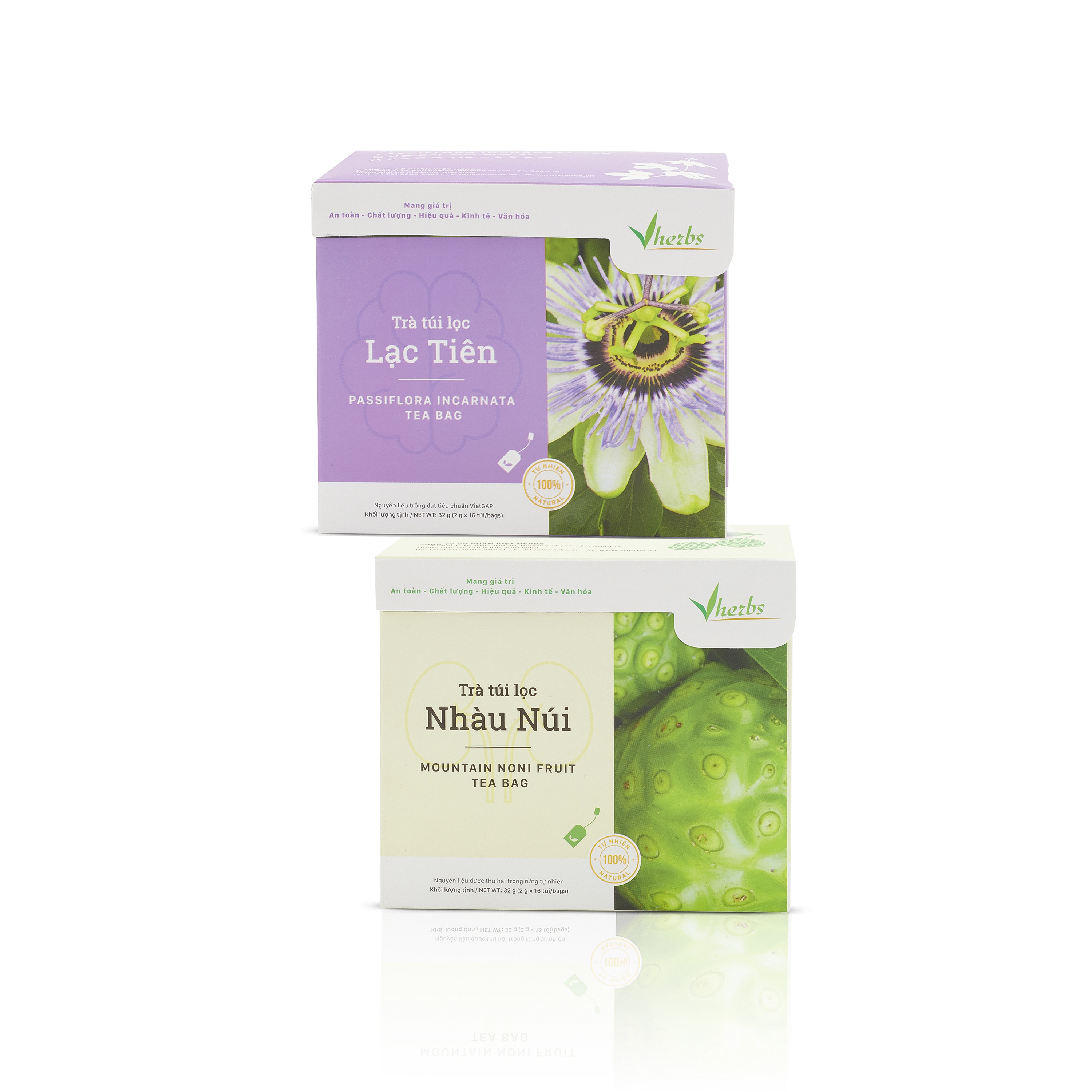 TRÀ THẢO DƯỢC  - TRÀ CỦA SỨC KHỎE VÀ SẮC ĐẸP Các loại trà thảo dược từ xa xưa nổi tiếng là đem lại lợi ích cho sức khỏe, nhưng tại sao nó lại thực sự mang lại lợi ích cho sức khỏe của chúng ta ? Trà thảo dược trông giống như trà và được pha theo cách tương tự như trà, nhưng nó thực sự không phải là trà bởi vì nó không được chế biến từ các loại trà (Camellia sinensis). Trà thảo dược là lọai nước được chiết suất từ các loại thảo dược. Nó được làm từ hỗn hợp của lá khô, các loại cỏ  các loại hạt, vỏ cây, quả, hoa… tạo ra hương vị đặc trưng của mỗi loại Không giống như các hình thức khác của trà, trà thảo dược không chứa caffeine. Nó có hương vị thanh nhẹ  và rất dễ uống. Trà thảo dược có thể chỉ được bào chế từ một loại thảo dược ( độc vị) hoặc nó có thể được phối trộn từ các loại thảo dược để tạo ra những lọai trà cho mục đích cụ thể như thư giãn, trẻ hóa hoặc giúp giải quyết một số bệnh  nào đó. Giới thiệu với quý khách BỘ TRÀ NGŨ HÀNH ( 5 sản phẩm) của Việt Herbs với 5 màu sắc, 5 hương vị với 5 công dụng khác nhau Các sản phẩm Trà thảo dược của Vherbs được chế biến từ nguồn dược liệu trồng tại Việt Nam theo tiêu chuẩn VietGAP và GACP-WHO. Chúng tôi luôn hướng đến luôn hướng đến việc thực hiện sản xuất xanh, phát triển bền vững, mang lại lợi ích sức khỏe cho cộng đồng. TRÀ LẠC TIÊN: GIẢM CĂNG THẲNG, LO ÂU, MẤT NGỦ - Thành phần nguyên liệu chính: Lạc tiên tây, Táo nhân, tim sen