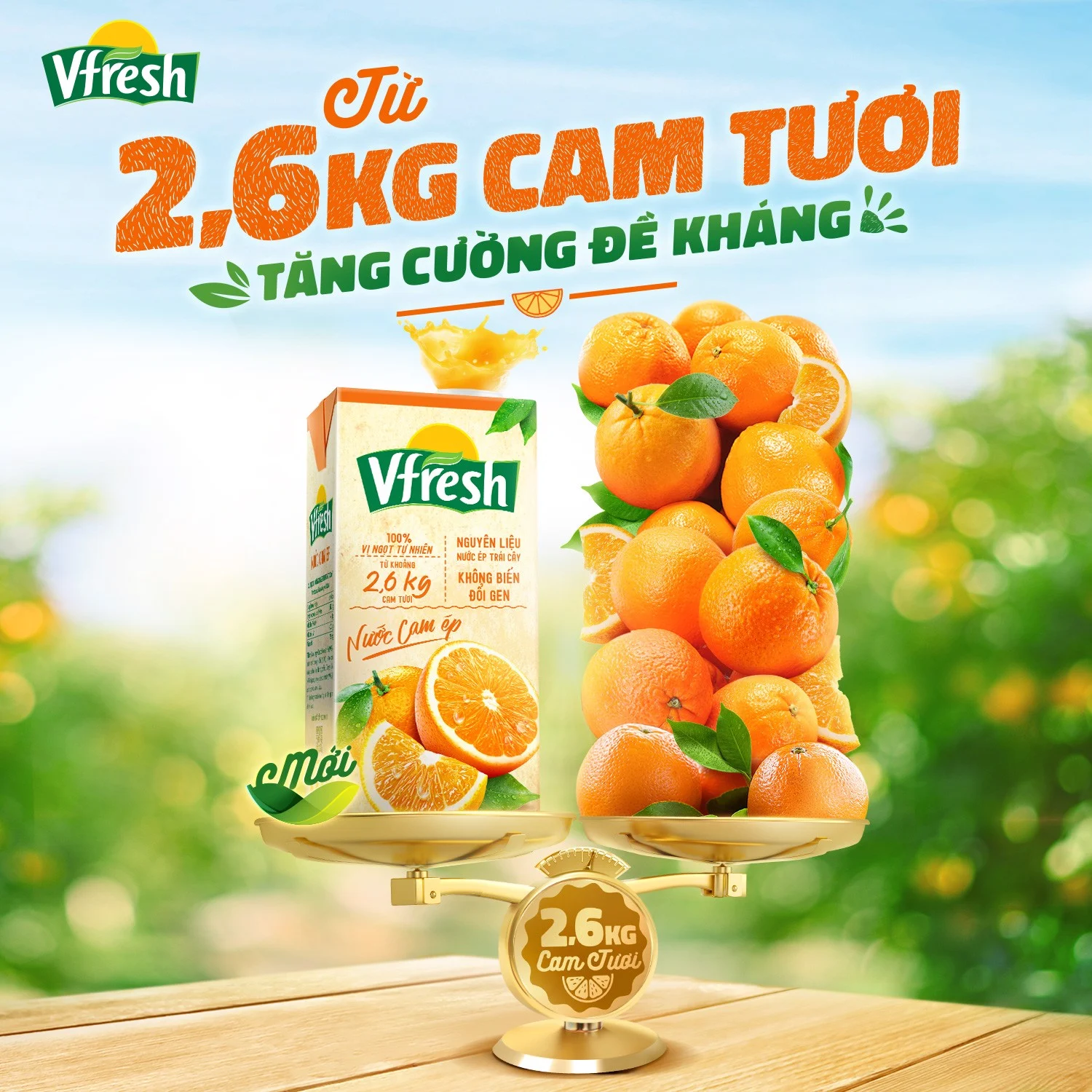 Nước cam Vfresh được sản xuất trên quy trình công nghệ hiện đại, đã qua quá trình kiểm định độ an toàn vệ sinh thực phẩm. Trong 1 lít nước cam được làm từ khoảng 1,3kg trái cam tươi, giàu vitamin C, hoàn toàn không chứa chất bảo quản và không sử dụng màu thực phẩm. Sản phẩm giúp tăng cường sức đề kháng, cho cơ thể khỏe mạnh mỗi ngày. Không chỉ vậy, Nước cam Vfresh còn có tác dụng giải nhiệt rất tốt, giúp tăng cường năng lượng cho cơ thể sau khi vận động và đem lại làn da mịn màng, tươi trẻ cho chị em phụ nữ.