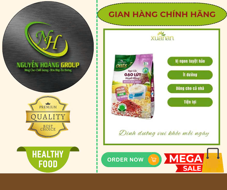 Thành Phần: Gạo lứt huyết rồng , Yến Mạch , Ngô , Đậu Xanh , lúa mạch , múa mỳ , canxi Công dụng : Trong ngũ Cốc có đường ISOMALT : Đây là loại dường chiết xuất từ củ cải đường , được viện dinh dưỡng và trung tâm nghiên cứu bệnh đái tháo đường khuyên dùng => Rát tốt cho sức khỏe , phòng bệnh mãn tính đặc biệt là bệnh tiểu đường. Đối Tượng Sử dụng: