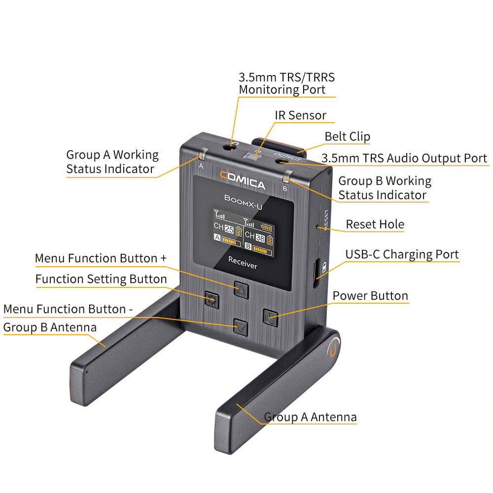 Hai Transmitters được kích hoạt và điều khiển bởi một Receiver duy nhất (với BoomX-U U2).
