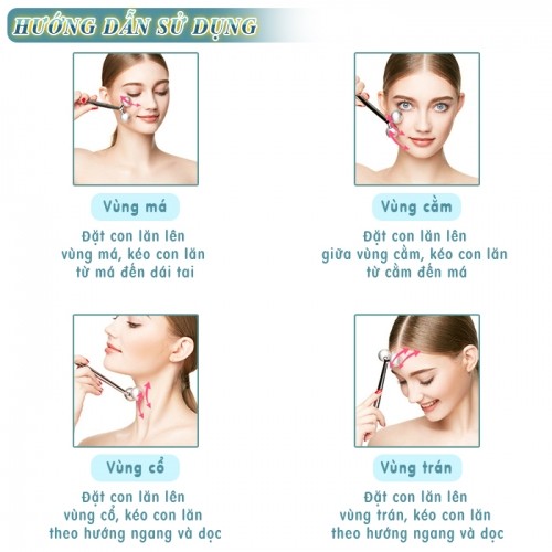 Vùng cằm: Đặt con lăn lên giữa vùng cằm, kéo con lăn từ cằm đến má.