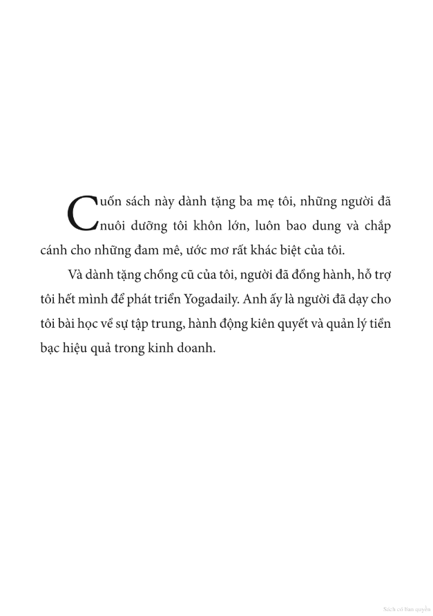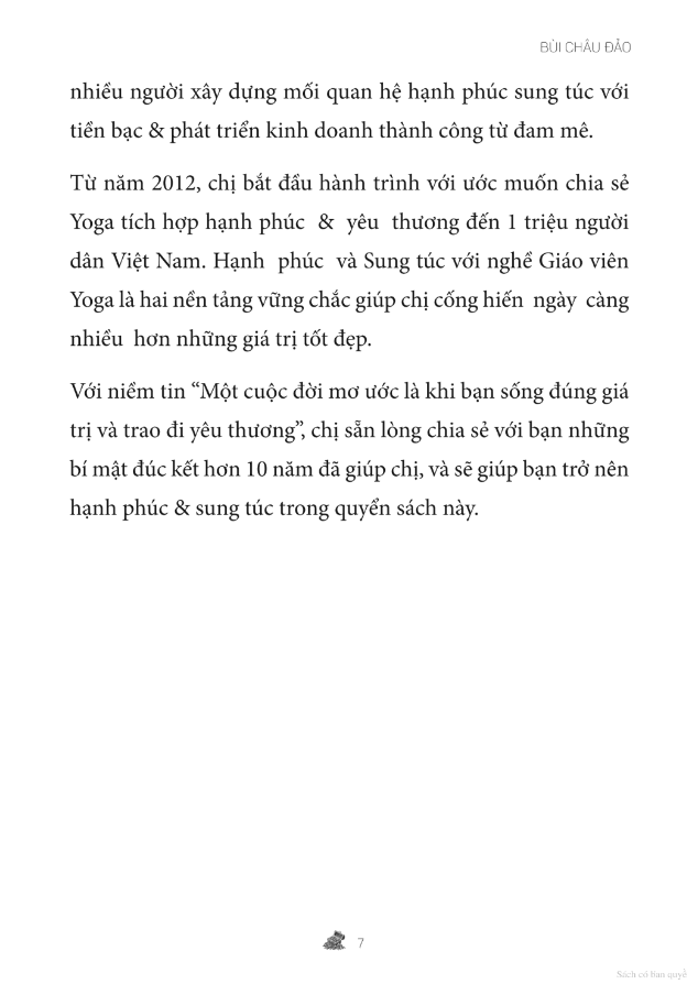 Công Tắc Vàng - 3 Bí Quyết Hạnh Phúc Và Sung Túc Với Nghề Giáo Viên Yoga Là giáo viên Yoga, bạn có băn khoăn… Tại sao m.ình rất ngại khi đề cập tới tiền bạc? Khi mới bắt đầu thì không biết nên lấy học phí thế nào? Không biết nên đi dạy trung tâm hay tự mở hoặc dạy online? Khi dạy được một thời gian thì không biết có nên tăng học phí không? Tôi và nhiều giáo viên Yoga từng được khuyên rằng hãy dạy bằng cái tâm, đừng nghĩ đến lợi ích cá nhân, nhất là vấn đề tiền bạc. Trải qua hành trình hơn 10 năm từ những lúc tài chính bấp bênh, tâm trí lao đao, cho tới lúc hạnh phúc và sung túc đủ đầy, tôi đã nhận ra: Lời dạy này không sai, nhưng nếu không hiểu đúng sẽ rất dễ dẫn đến tình trạng mông lung, chán nản. Những bí quyết trong sách không chỉ ứng dụng cho các Giáo viên Yoga, mà còn có thể giúp bất cứ ai muốn phát triển một sự nghiệp thành công từ đam mê của m.ình. Sẽ còn một bí mật rất khác biệt về tiền bạc đang chờ bạn khám phá… Hãy cùng đọc sách và bật lên công tắc hạnh phúc và sung túc