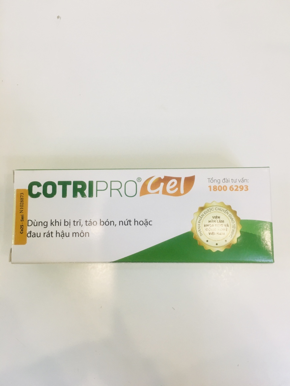 - Dùng được cho phụ nữ mang thai và trẻ em Cách dùng: Bước 1: Rửa sạch tay và vùng da hậu môn bằng nước muối pha loãng (hoặc dùng nước muối sinh lý thì càng tốt). Bước 2: Trong mỗi hộp Cotripro Gel, ngoài tuýp Gel bôi thì đều kèm theo một túi găng ngón tay cao su. Mỗi lần sử dụng bạn đeo 1 chiếc găng cao su rồi kéo đến hết chiều dài ngón tay. Bước 3: Bóp 1 lượng Gel vừa đủ lên đầu ngón tay đã đeo găng cao su. Bước 4: Xoa đều Gel lên vùng da hậu môn hoặc bôi vào phía trong trực tràng. Chờ 5-10 phút cho gel khô hẳn là được. Ngày bôi 2 lần vào buổi sáng và buổi tối. Quy cách đóng gói: Hộp gồm 1 tuýp Gel Cotripro 25gr và 1 túi găng ngón tay cao su. Bảo quản: Để nơi khô ráo, bảo quản ở nhiệt độ phòng, tránh ánh sáng trực tiếp. Số công bố: 2880/18/CBMP-HN Đăng ký quảng cáo: 076/18/XNQCMP-YTHN