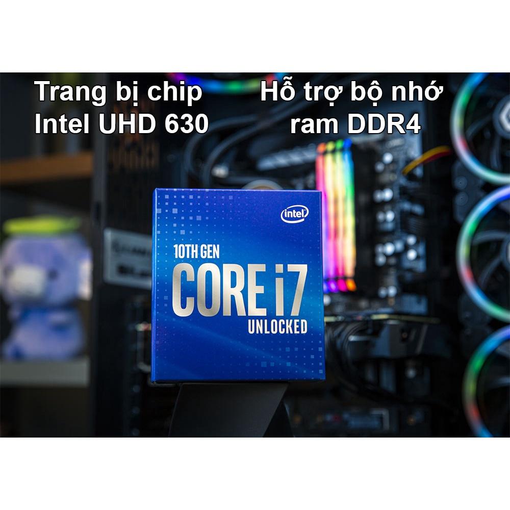 Mô tả sản phẩm Đánh giá chi tiết Bộ vi xử lý/ CPU Intel Comet Lake Core i7-10700 Hiệu năng mạnh mẽ với tốc độ lên đến 4.8Ghz 8 nhân 16 luồng Có thể nói