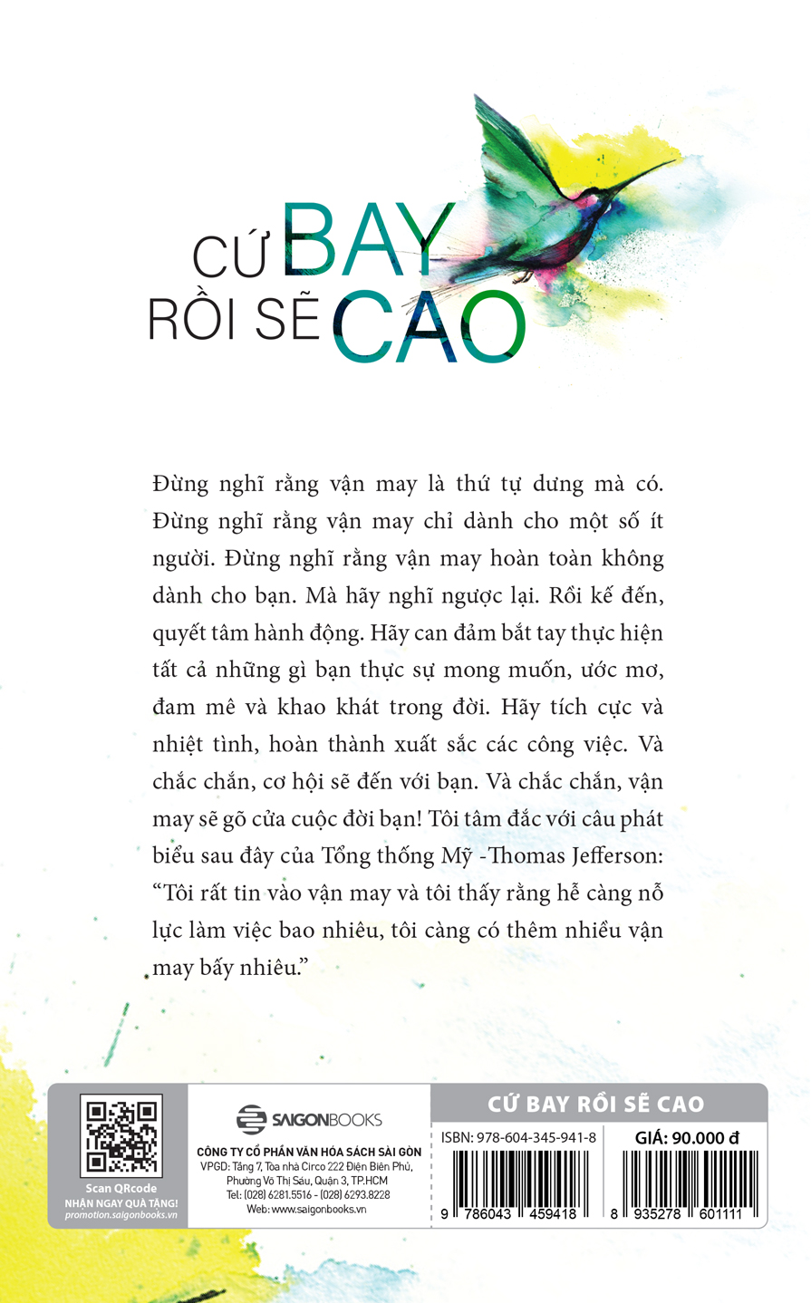 Với những chia sẻ tâm huyết của hai tác giả ở cuốn "Cứ bay rồi sẽ cao", dù ở độ tuổi hay ngành nghề nào bạn cũng sẽ vỡ lẽ và lớn lên. Nó sẽ khuyến khích con người "khổng lồ" đang ẩn mình trong bạn dũng cảm vươn lên và tỏa sáng. Cứ bay đi, rồi sẽ cao!