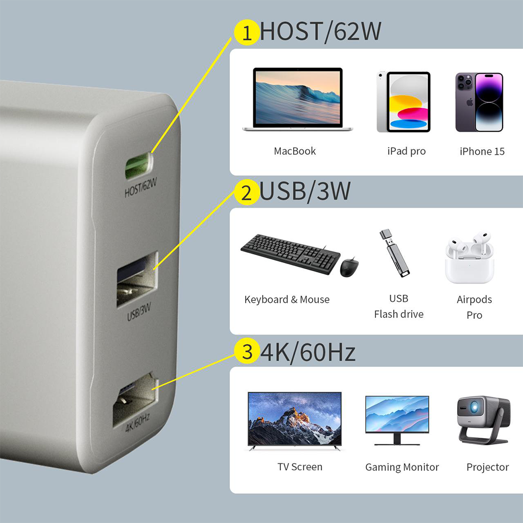 HDMI 4K/60Hz: Cổng truyền dữ liệu HDMI 4K/60Hz tương thích với Switch, màn hình TV,